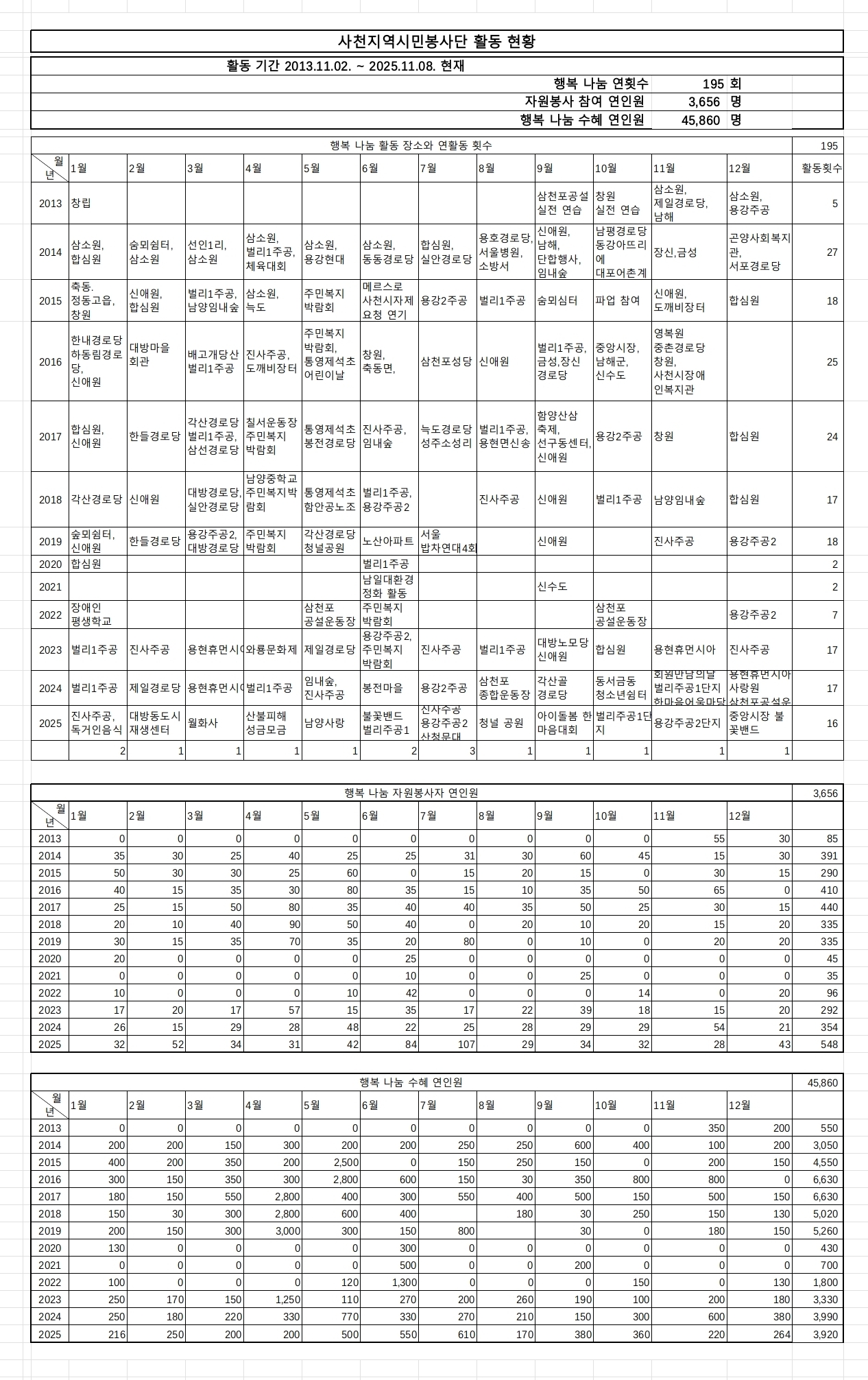 Ȱµ¿ÇöȲǥ(2013³â~2025³â)¿Í Á¶Á÷µµ
